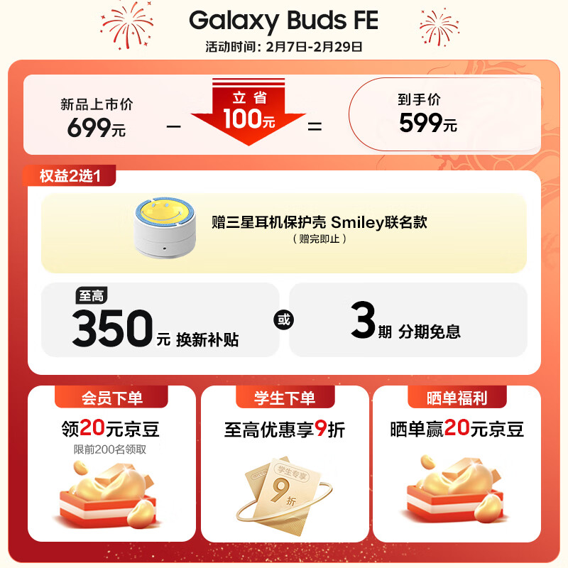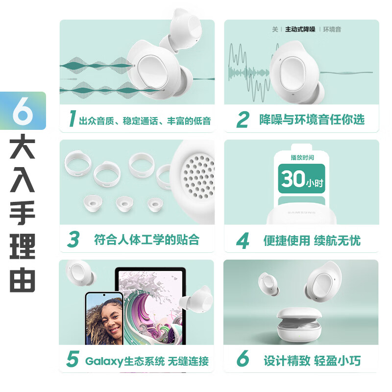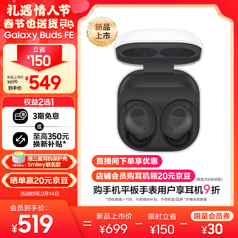 三星(SAMSUNG)Galaxy Buds FE 智能主动降噪真无线蓝牙耳机/出众音质/持久续航/舒适佩戴 山岩灰价格:549.00元!