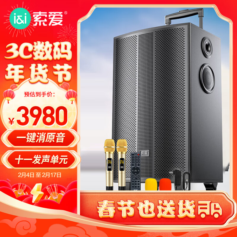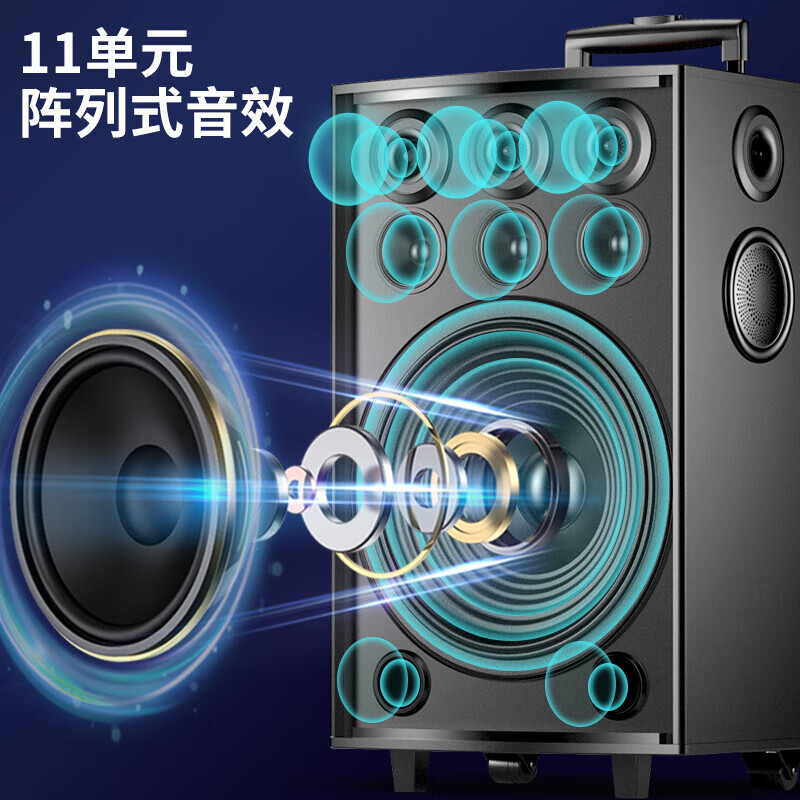 索爱(soaiy)SA-X62舞台级11喇叭12英寸大功率重低音广场舞音响网红直播户外蓝牙拉杆音箱带无线声卡话筒价格:3980.00元!