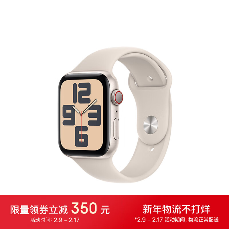 Apple/苹果 Watch SE 2023款智能手表GPS+蜂窝款44毫米星光色铝金属表壳星光色运动型表带M/L MRGY3CH/A价格:2599.00元!