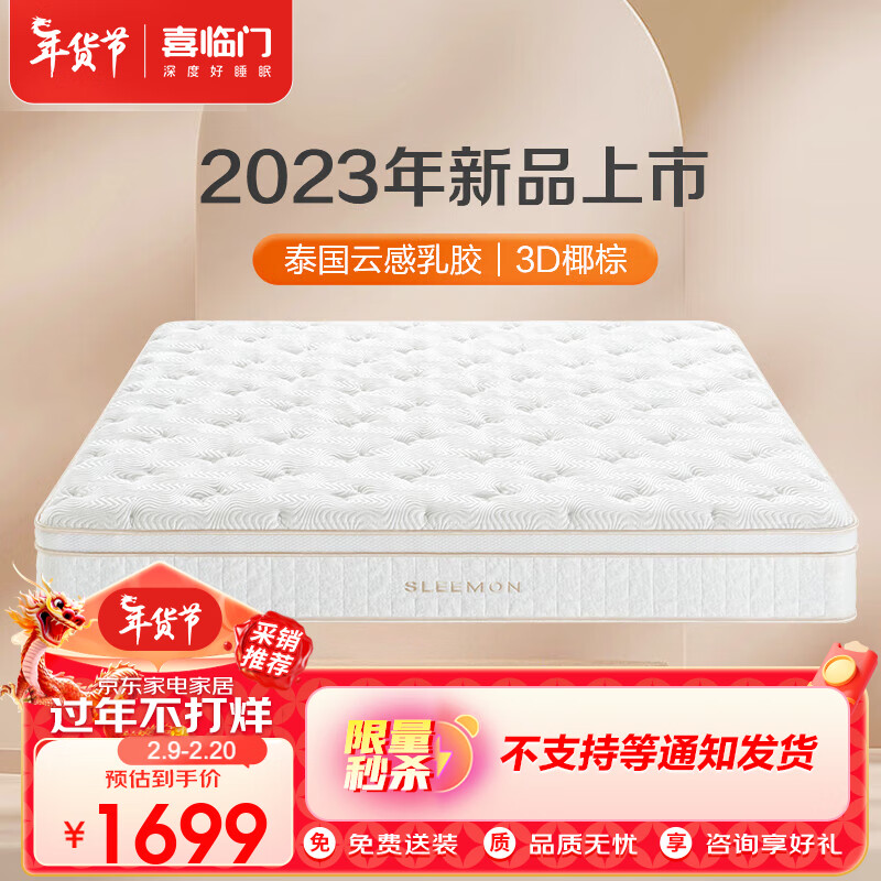 喜临门抑菌防螨高纯乳胶床垫 独袋弹簧椰棕主卧床垫 云朗悦 床垫1.8x2米价格:1699.00元!