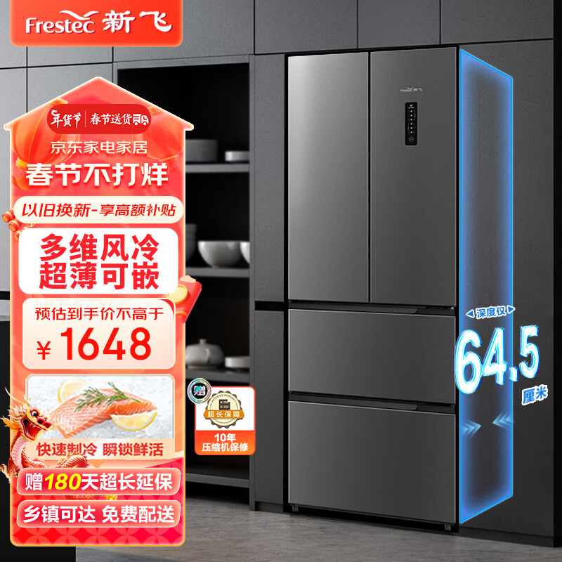 新飞(Frestec)310升超薄可嵌入法式上对开多门冰箱 多维风冷养鲜电冰箱 BCD-310WK7AT价格:1648.00元!