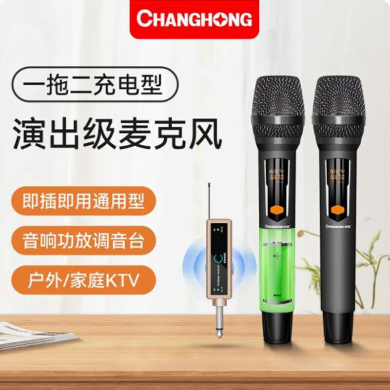 长虹MC30专业级一拖二可调频充电无线麦克风话筒家庭KTV音箱功放机户外演讲舞台演唱会K歌直播主持会议价格:379.00元!