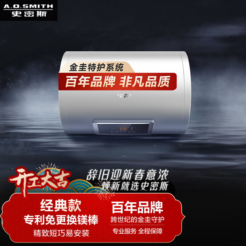史密斯(A.O.SMITH)60升电热水器 专利免更换镁棒 金圭内胆 短款小尺寸 速热节能 大屏E60VC0-B 一级能效价格:2398.00元!