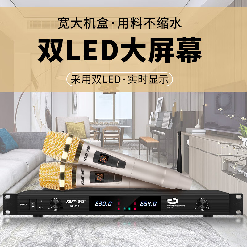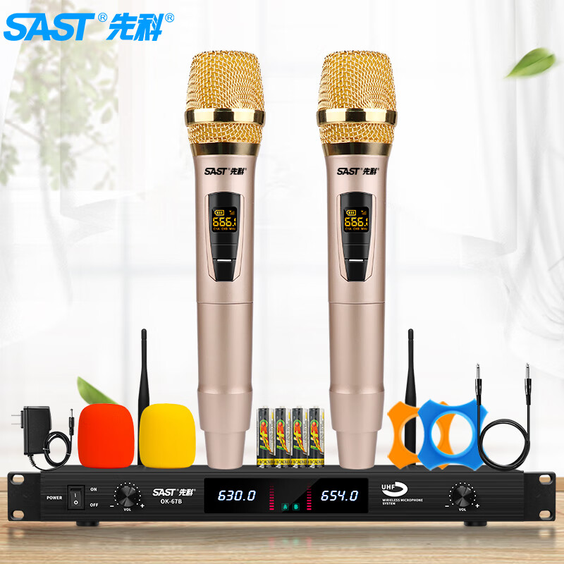 先科 SAST 无线麦克风话筒专业工程级k歌一拖二家庭ktv卡拉OK培训会议演讲主持舞台U段手持可调频价格:399.00元!
