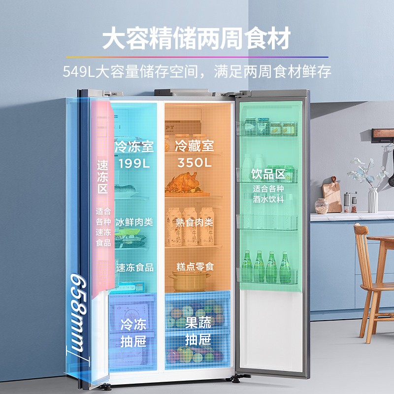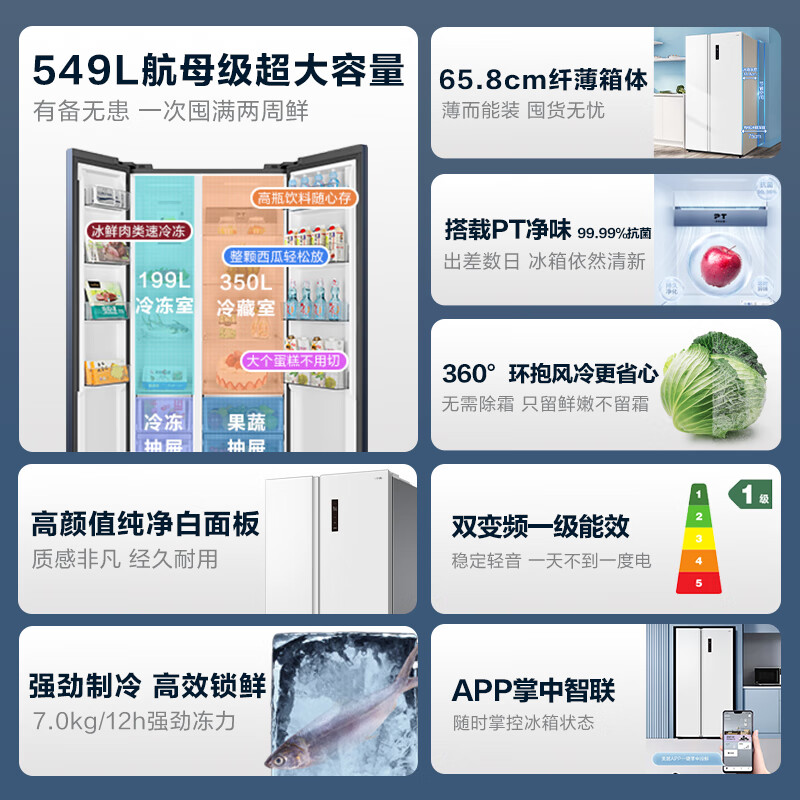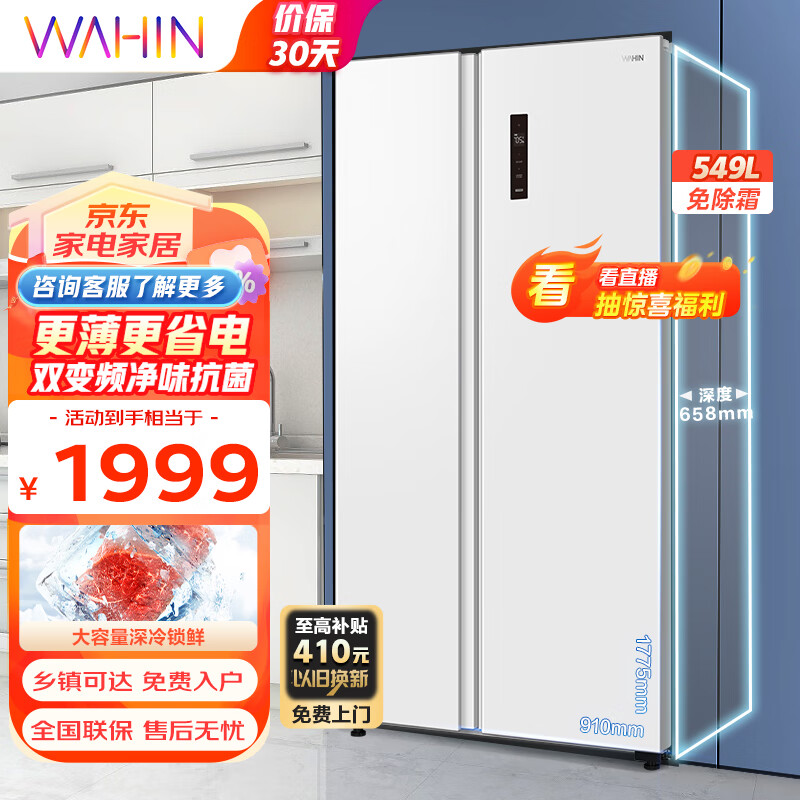 华凌549升白色对开门双开门家用超薄电冰箱 一级能效双变频风冷无霜WiFi智能超大容量冰箱BCD-549WKPZH价格:1999.00元!