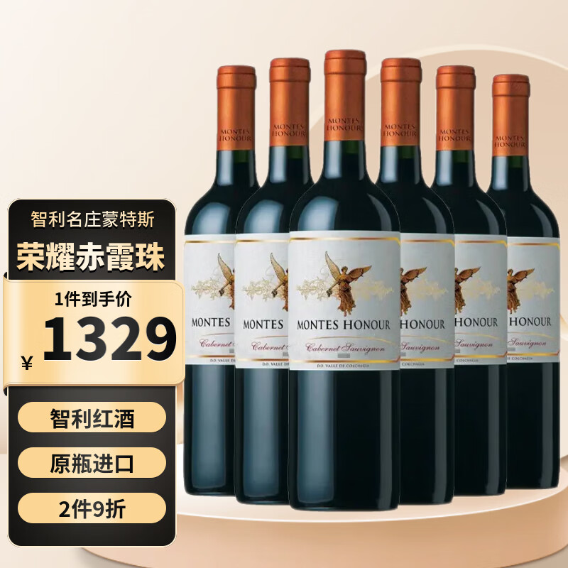 MONTES蒙特斯荣耀赤霞珠干红葡萄酒 智利进口红酒送礼佳选750ml*6瓶整箱价格:1680.00元!