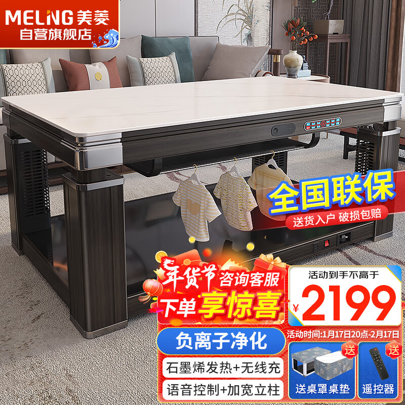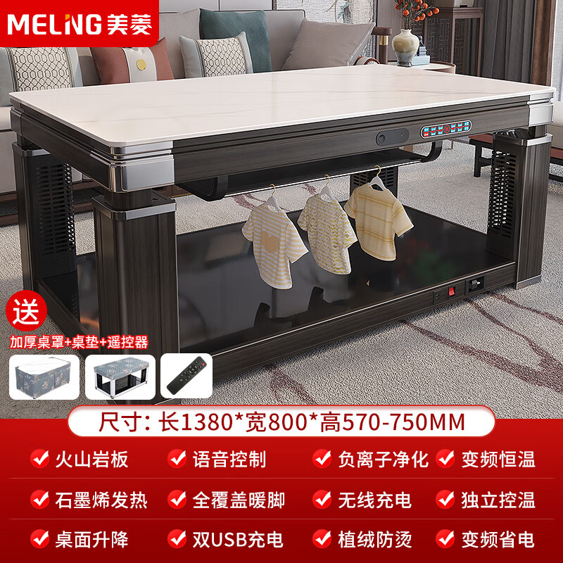 美菱电暖桌1.38米长方形取暖桌家用升降烤火炉茶几负离子烤火桌多功能电烤桌餐桌电暖炉MDN-X1GZ-GD2E价格:2599.00元!