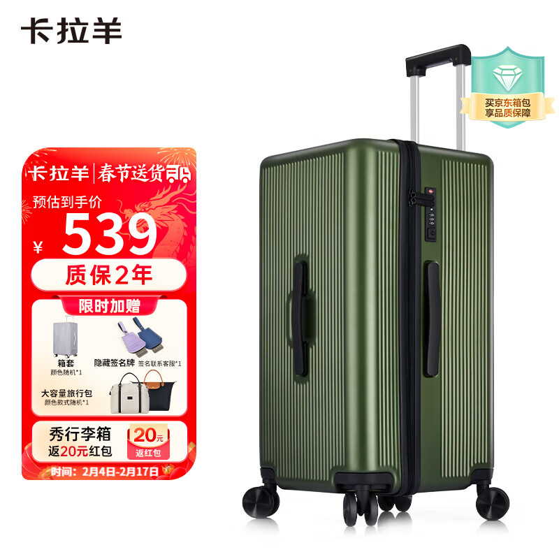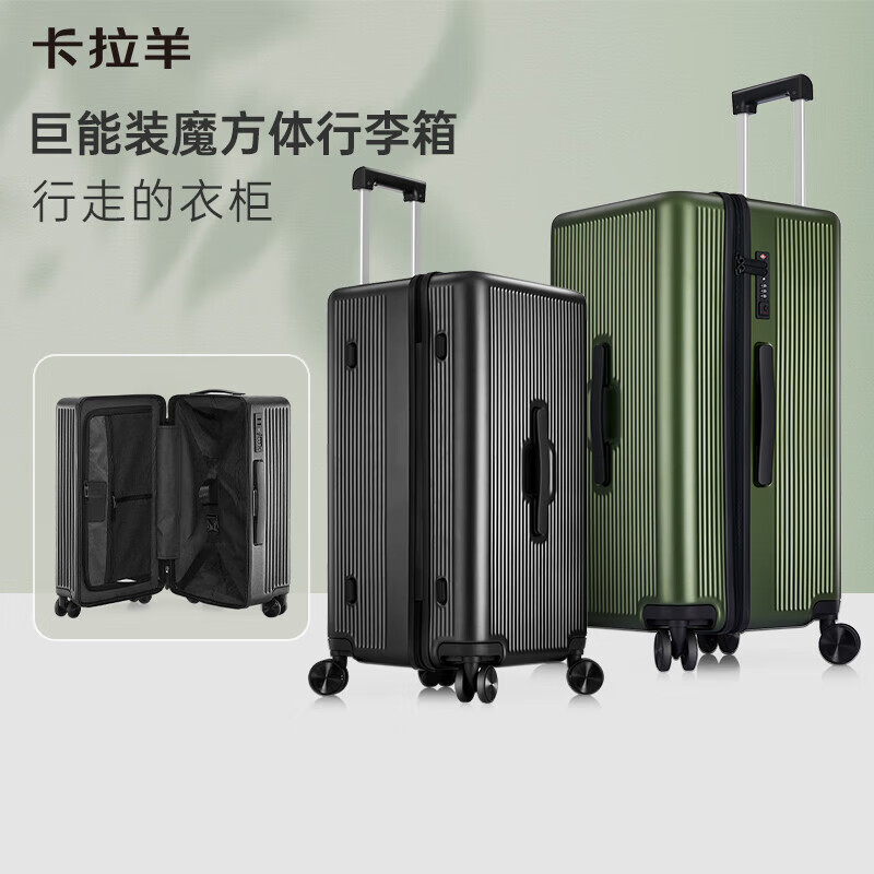 卡拉羊魔方体行李箱24英寸大容量旅行箱男女巨能装拉杆箱CX8110沙漠绿价格:639.00元!
