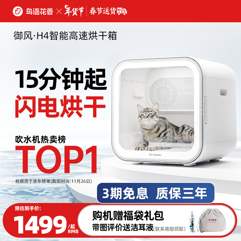 鳥語花香宠物烘干箱 全自动猫咪狗狗洗澡烘干机双风机系统高速烘干更安静价格:1499.00元!