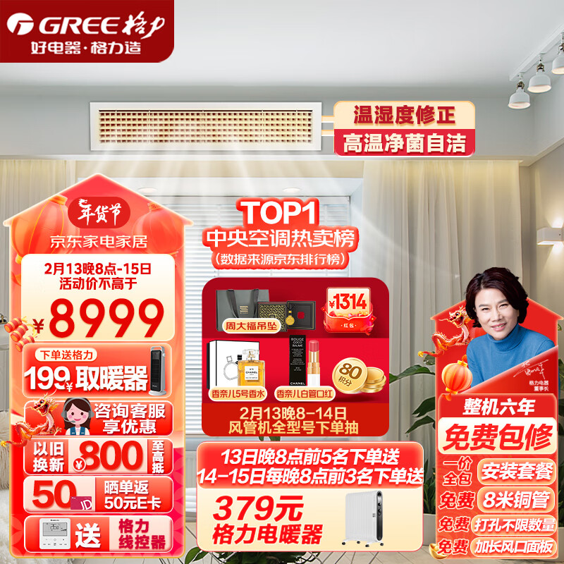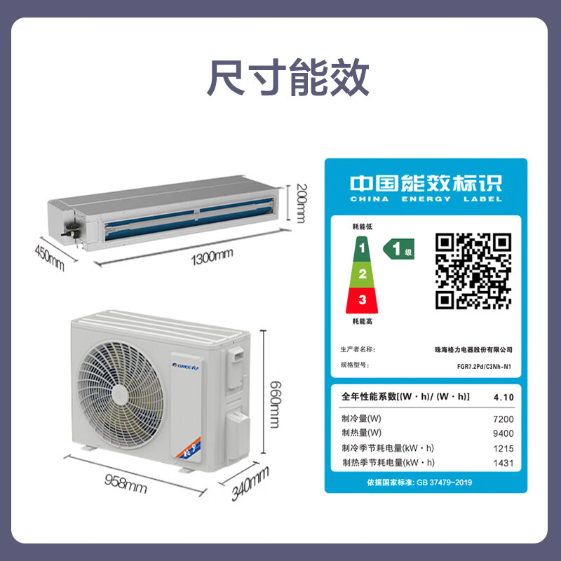 格力(GREE)中央空调 风管机一拖一 C3+ 3匹家用嵌入式空调 1级能效FGR7.2Pd/C3Nh-N1 京仓派送(一价全包)价格:8995.00元!