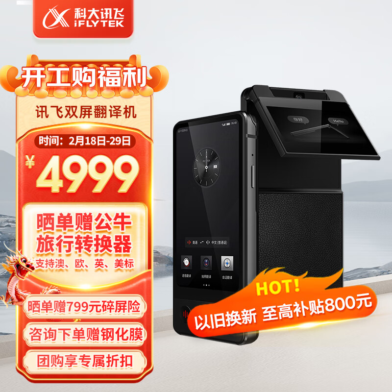 科大讯飞双屏翻译机 多语种离线翻译器 同声字幕翻译笔出国旅游口语实时翻译 商务黑价格:4999.00元!