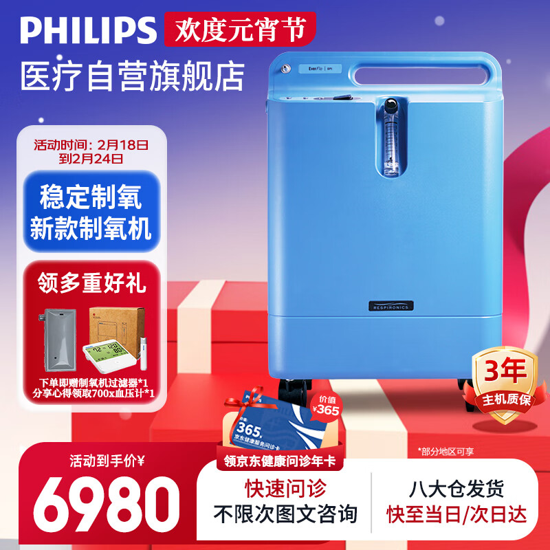 飞利浦(PHILIPS)5L升医用制氧机进口吸氧机家用老人孕妇氧气机EverFlo Q价格:7380.00元!