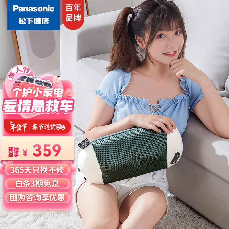 松下(Panasonic)颈椎按摩器按摩仪肩腰腿部靠垫家用车载办公按摩抱枕送父母朋友生日礼物 软萌治愈 年会礼品NADG3价格:465.56元!