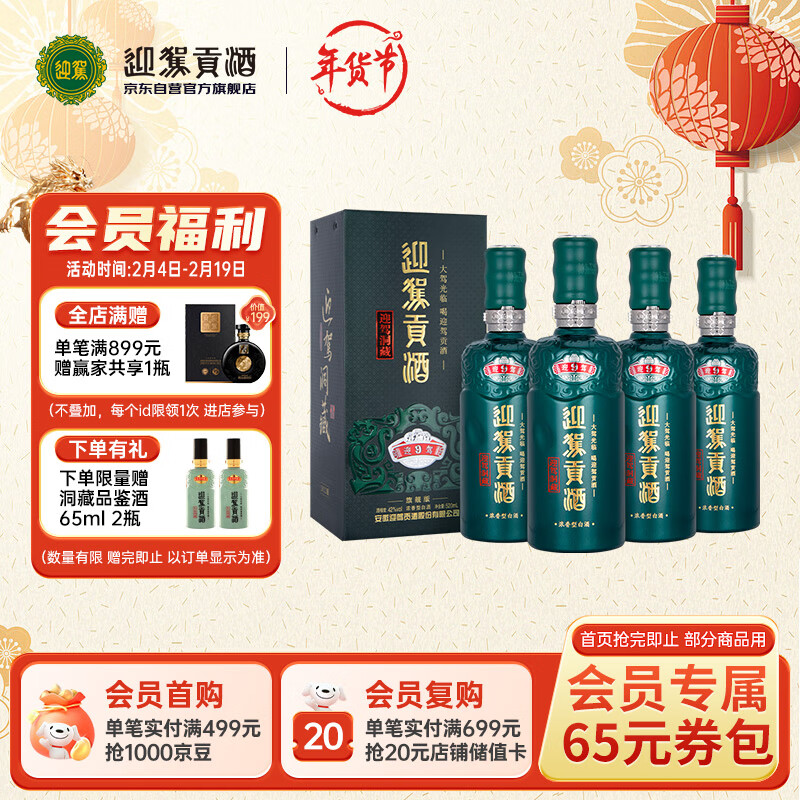 迎驾贡酒 生态洞藏9 浓香型白酒 42度 520ml*4瓶 整箱装 年货送礼价格:1159.00元!