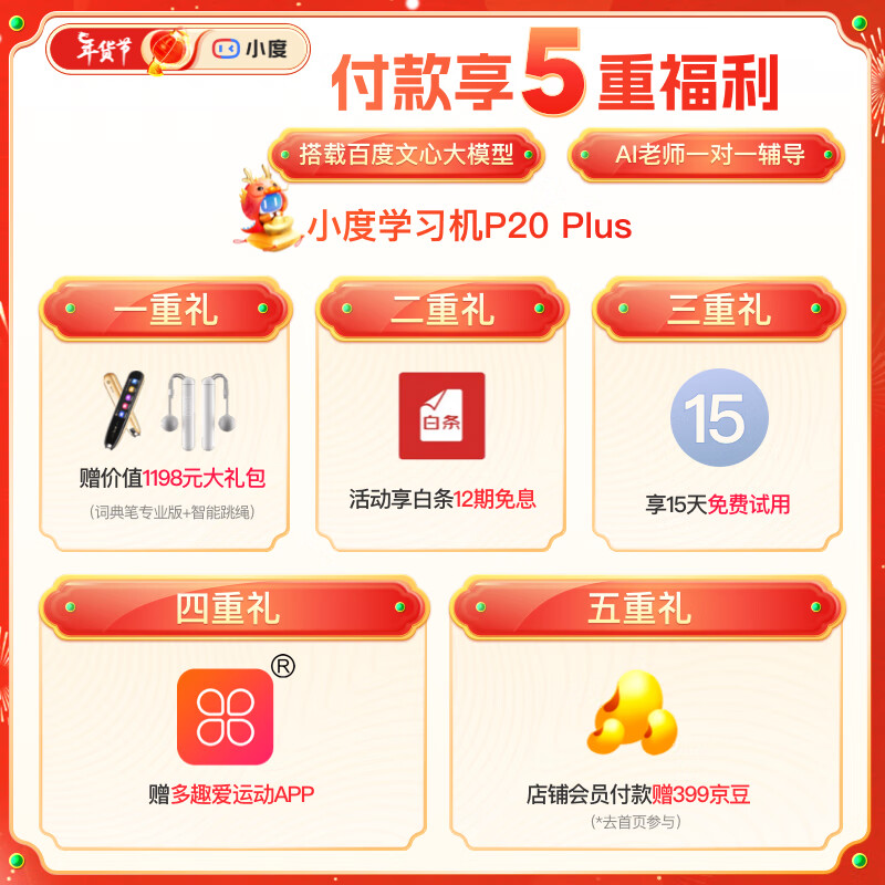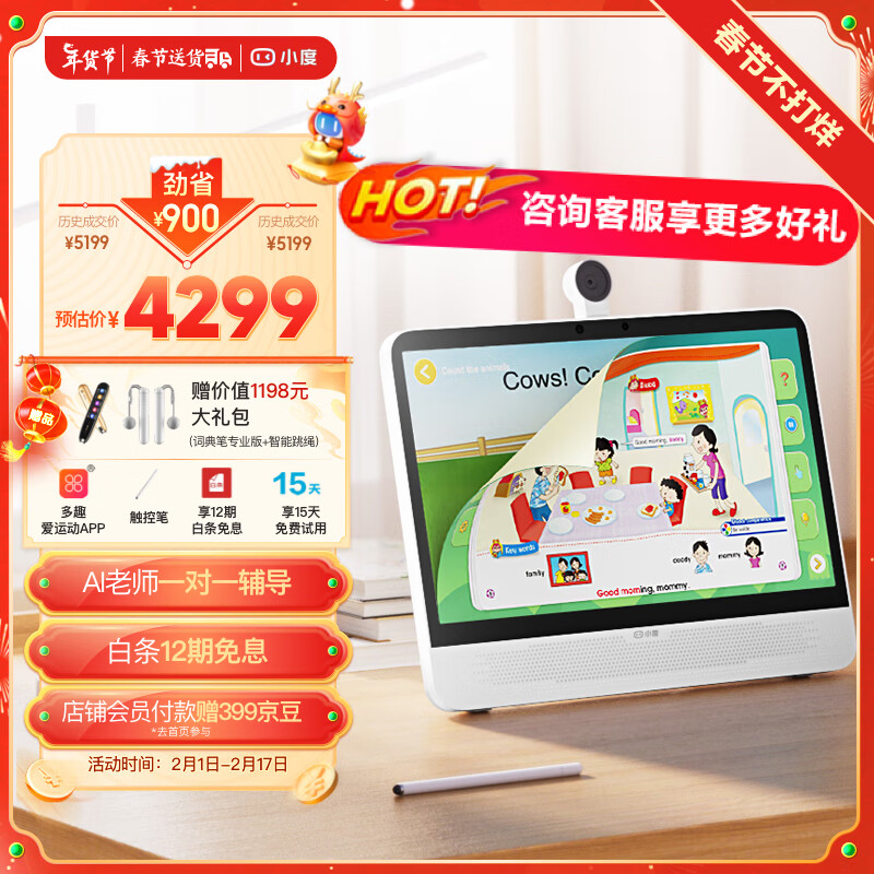 小度大屏学习机P20Plus(6+256G)15.6英寸小学到高中学生平板电脑 百度文心大模型 AI精准学 多娃系统价格:4299.00元!
