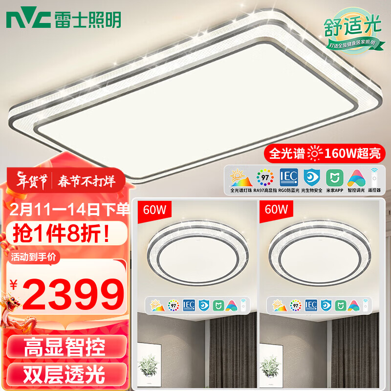 雷士(NVC)LED吸顶灯现代简约客厅卧室轻奢大气灯具大尺寸全光谱语音灯饰F价格:2998.00元!