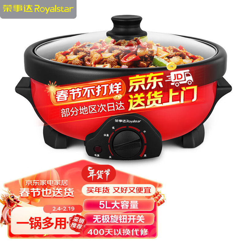 荣事达(Royalstar) 电火锅分体式5L家用多功能电热锅电煮锅电炒锅RHG-50D价格:159.00元!