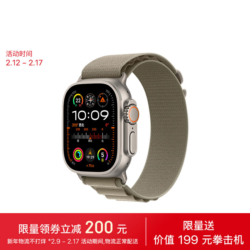 Apple/苹果 Watch Ultra2 智能手表GPS+蜂窝款49毫米钛金属表壳橄榄色高山回环式表带大号MRFK3CH/A价格:6499.00元!