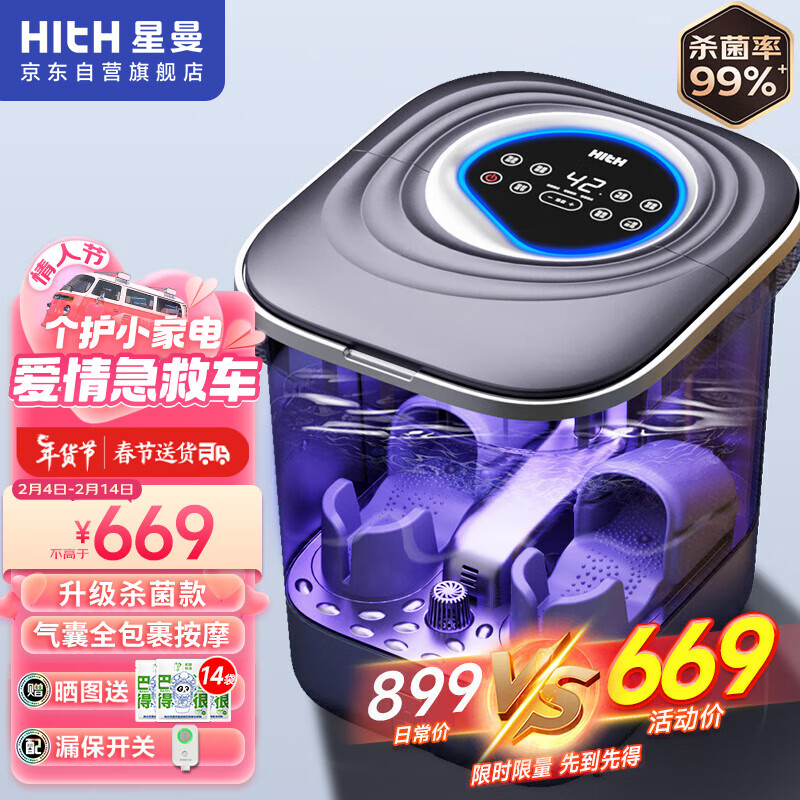 HITH泡脚桶 智能全包裹气囊按摩足浴盆 全自动加热恒温杀菌高深桶足浴泡脚盆 节日实用礼物 YMZ-W6价格:899.00元!