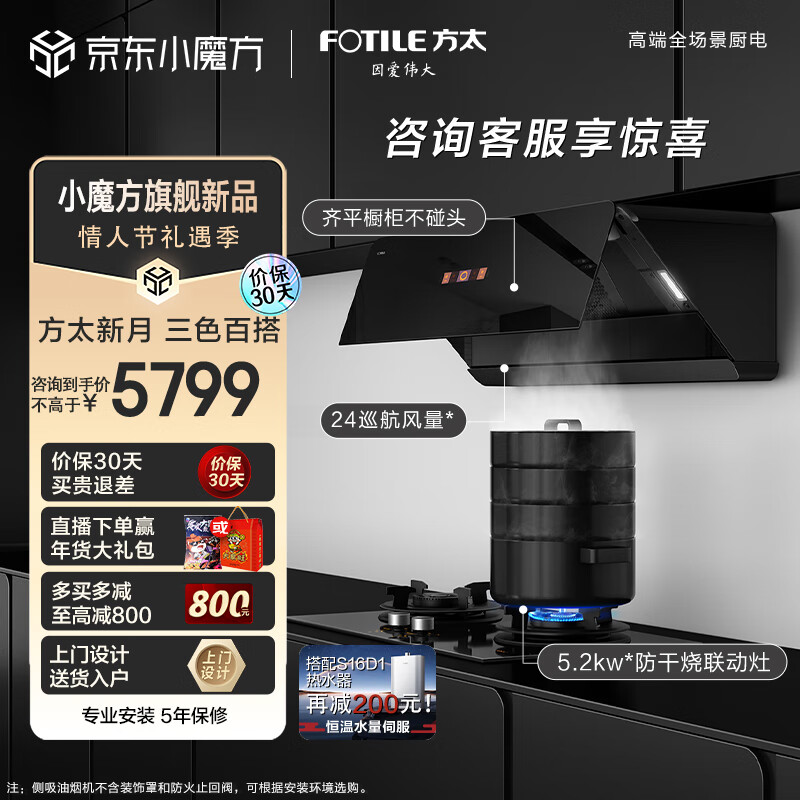 方太抽吸油烟机灶具套装 侧吸式变频烟灶24巡航风量烟灶联动挥手5.2kw防干烧 换装双灶 F1A+THK21B价格:5799.00元!
