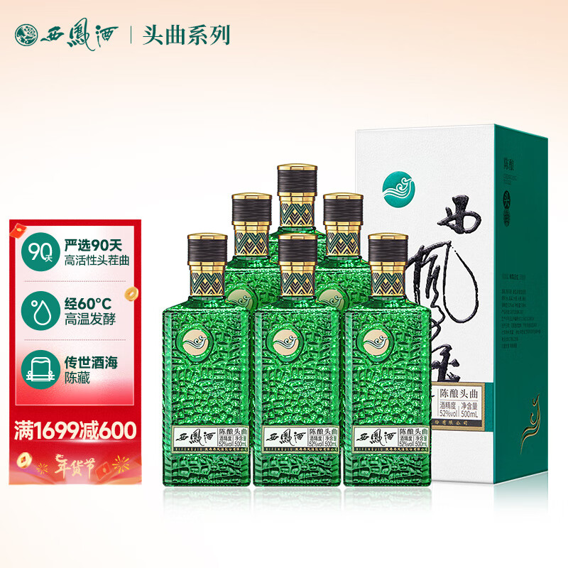 西凤酒 陈酿头曲 52度 500ml*6瓶 整箱装 凤香型白酒价格:1699.00元!