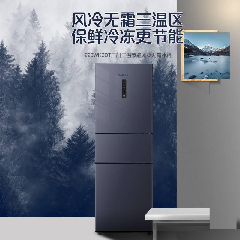 新飞(Frestec)223升三门三温风冷无霜家用小冰箱 小巧机身节能省电低噪音 BCD-223WK3DT价格:1499.00元!