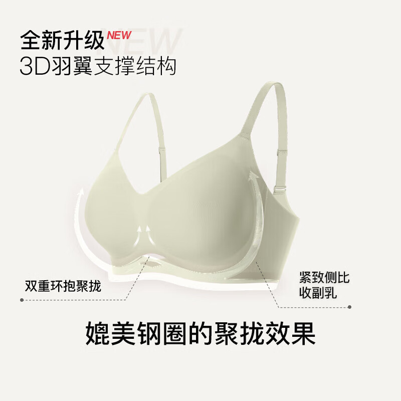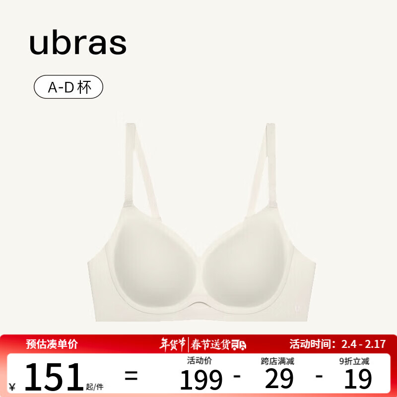 ubras镂空环抱软支撑文胸女士内衣女无痕无钢圈聚拢胸罩 经典燕麦奶M价格:199.00元!
