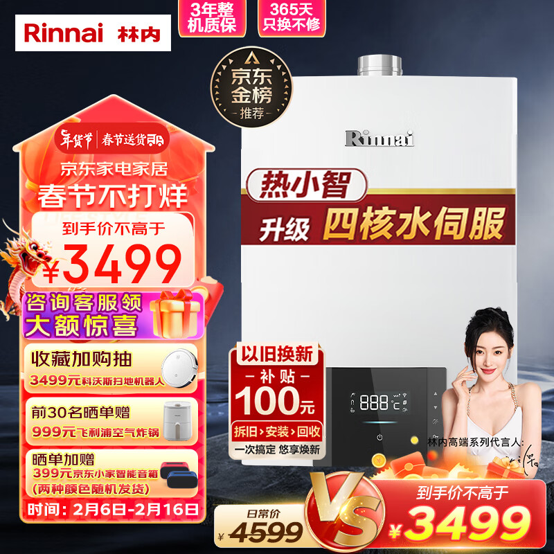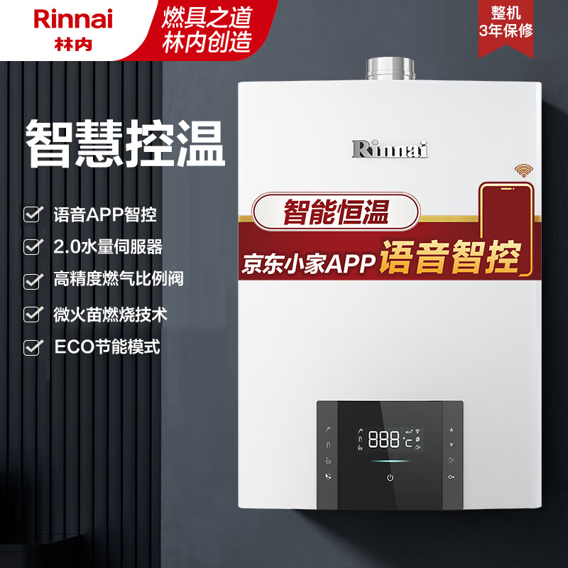 林内(Rinnai)【热小智】13升恒温防冻 燃气热水器变频水伺服京东小家智能生态语音APP智控13QD06W (JSQ26-D06W)价格:3499.00元!