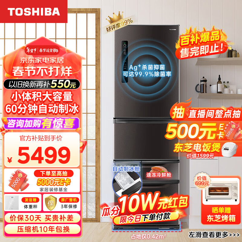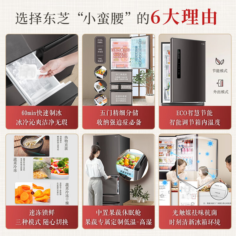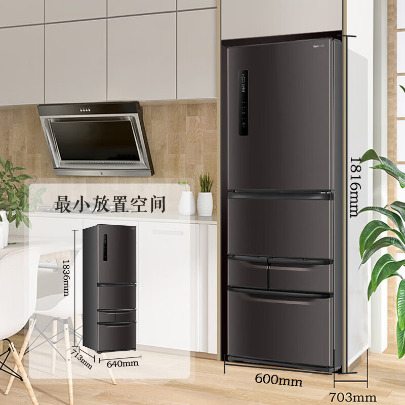 东芝(TOSHIBA)日式多门五门小户型家用高端电冰箱大容量超薄嵌入式自动制冰无霜GR-RM433WE-PM237绸缎灰价格:5477.00元!