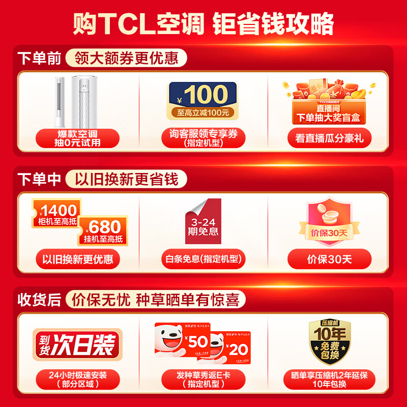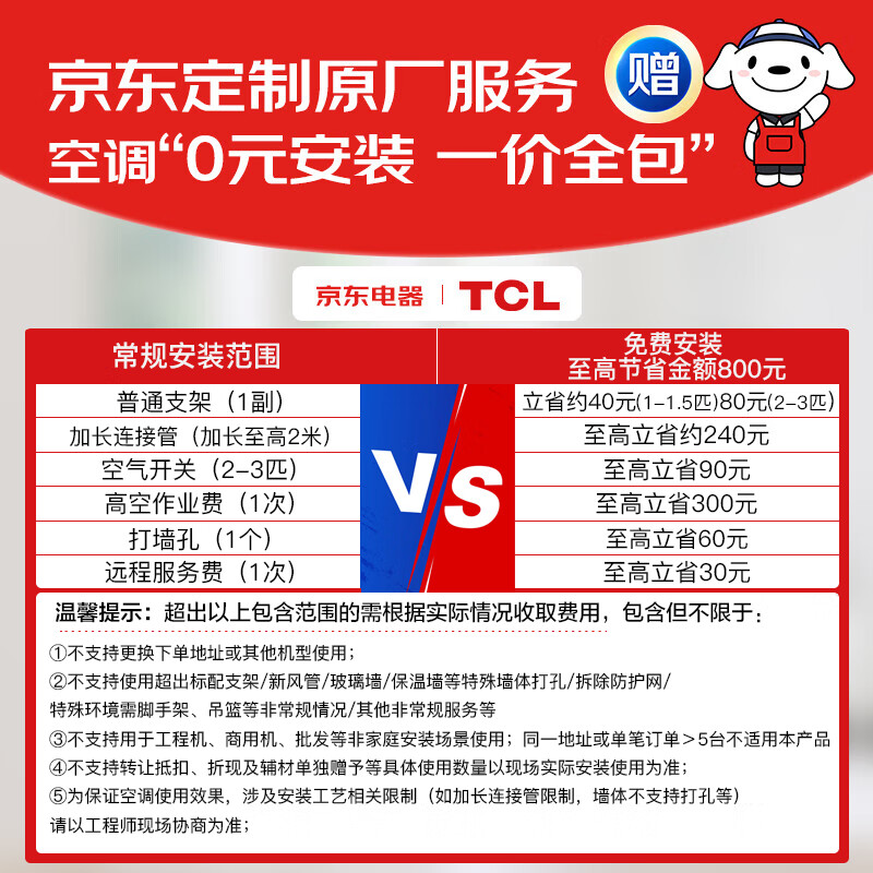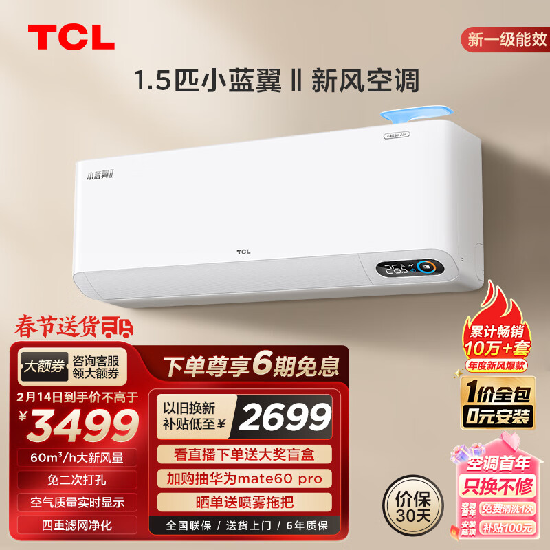 TCL 新风空调2匹新一级变频60?/h大新风量 小蓝翼Ⅱ智能空调挂机KFRd-46GW/D-SWA11Bp(B1)一价全包价格:3499.00元!