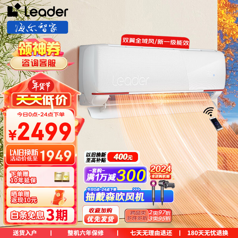 统帅(Leader)空调海尔出品1.5匹一级能效变频冷暖元气卧室省电空调56度自清洁智能感知光线 以旧换新35LKC81价格:2499.00元!
