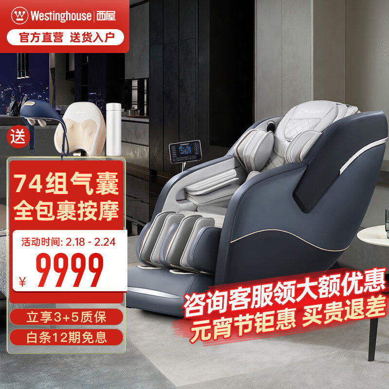 西屋(Westinghouse)S570按摩椅太空舱23年新款全自动多功能零重力家用按摩沙发电动高端甄选送老人父母礼物 S500-灰蓝色【节日生日礼物实用送爸爸妈妈】价格:15999.00元!