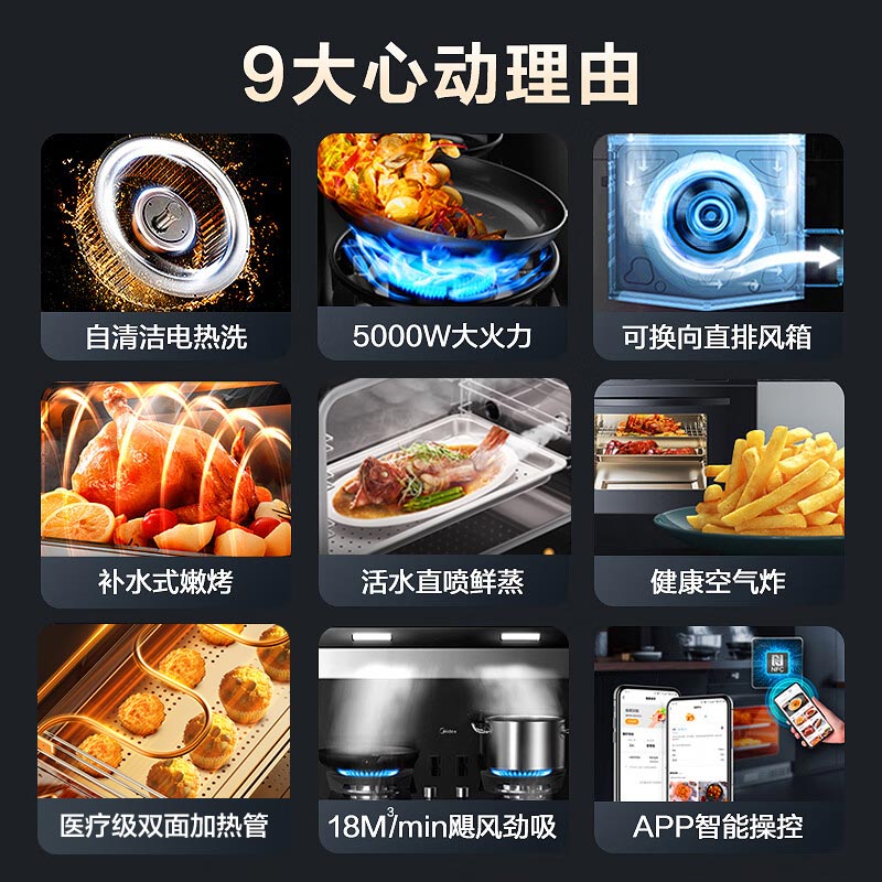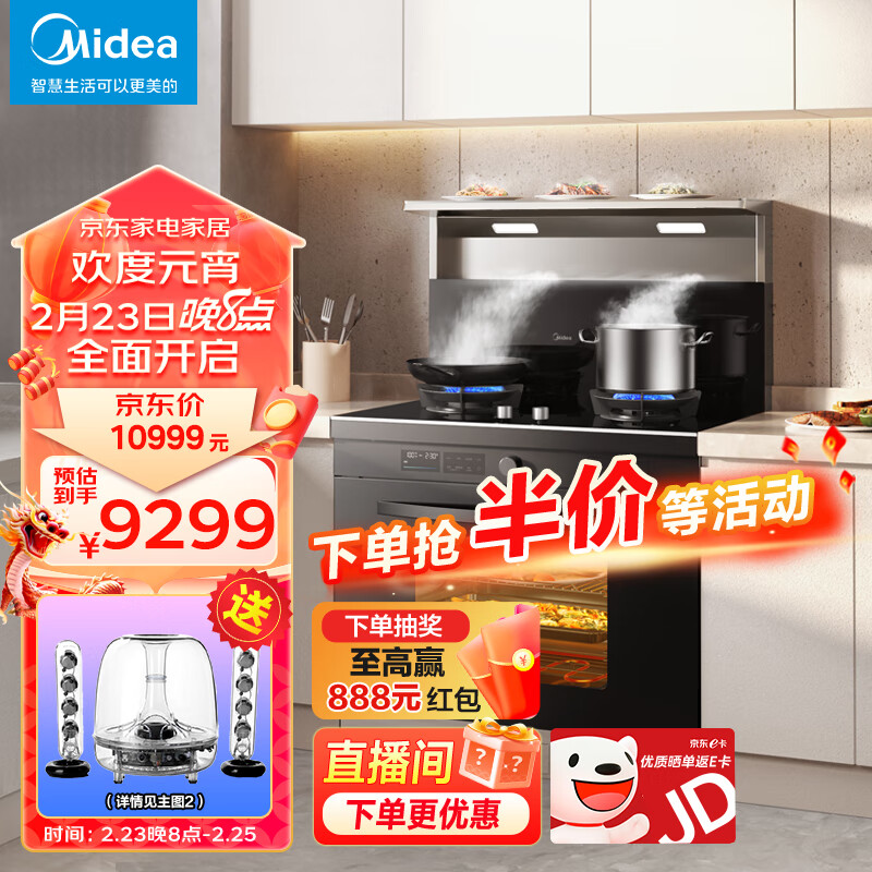 美的(Midea)蒸烤一体集成灶 抽油烟机 燃气灶 空气炸 保温置物台 电热自清洁 60L蒸烤箱 JX06 天然气价格:9299.00元!