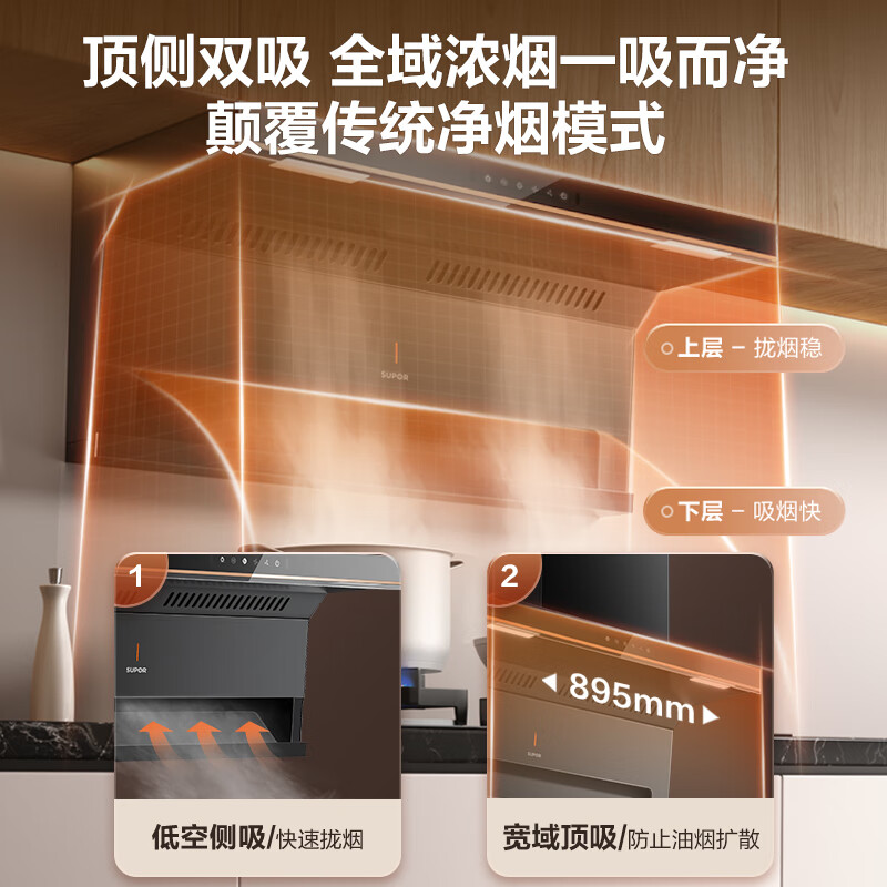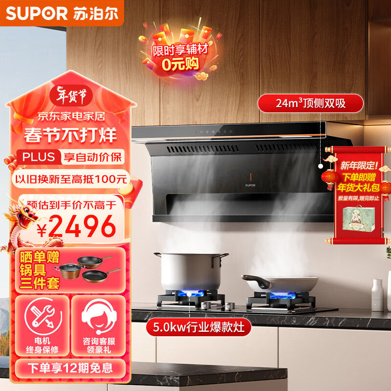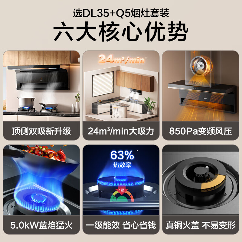 苏泊尔(SUPOR)抽油烟机 双腔拢烟顶侧双吸油烟机灶具套装 24立方吸力变频烟灶 家用油烟机燃气灶 DL35+Q5天然气价格:2496.00元!