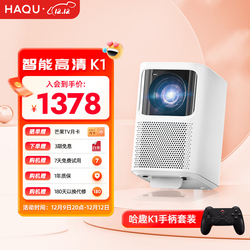 哈趣 K1 全高清智能家用投影仪+北通无线游戏手柄价格:1388.00元!
