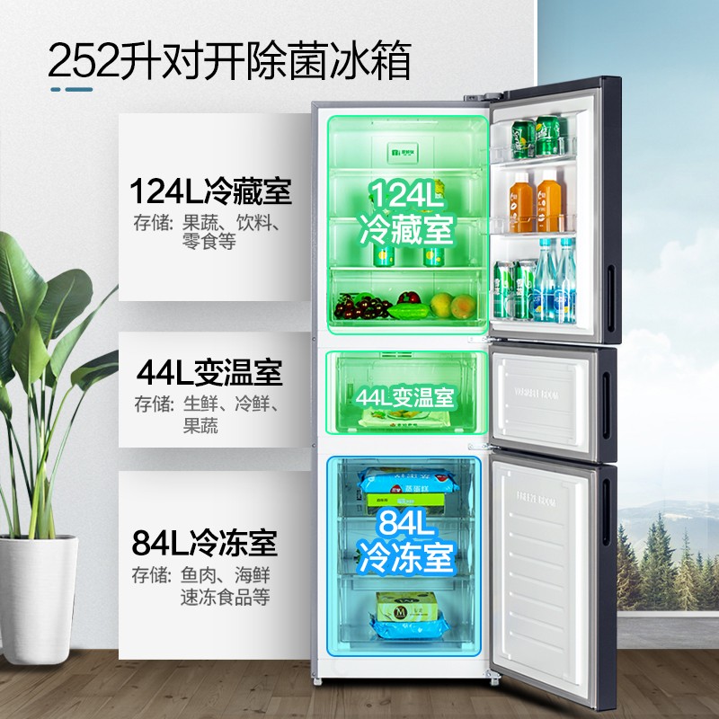 新飞(Frestec)252升变频一级风冷小冰箱三门冰箱 中门宽幅变温 原鲜钛除菌冰箱 BCD-252WK3AT/L价格:1749.00元!