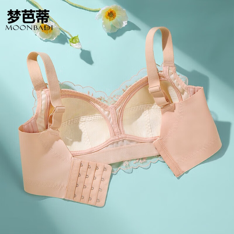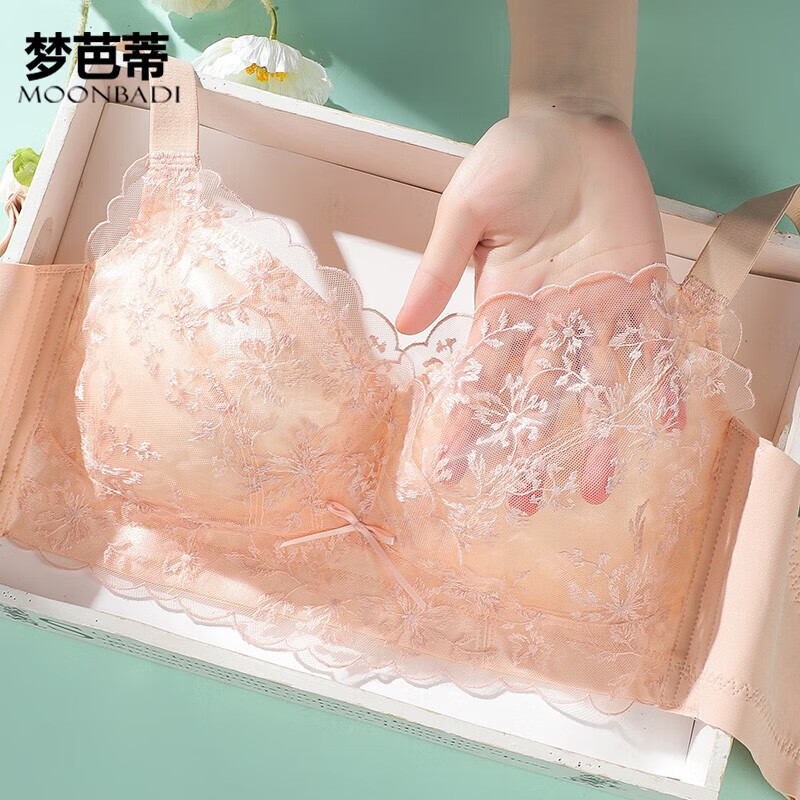 梦芭蒂内衣女刺绣乳胶文胸大胸显小薄款无钢圈收副乳胸罩 清香肤色 75D价格:139.00元!