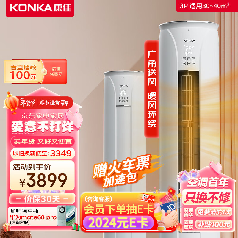 康佳(KONKA)3匹 新能效 第四代自清洁 一键节能 变频客厅空调 以旧换新 立式圆柱柜机 KFR-72LW/YC3价格:3899.00元!