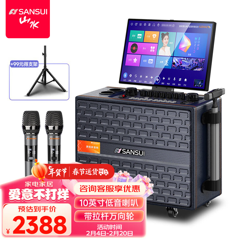 山水(SANSUI)Q105 家庭ktv音响套装 广场舞户外便携家用卡拉ok点歌机一体机视频机 移动K歌蓝牙音箱低音炮价格:2347.00元!