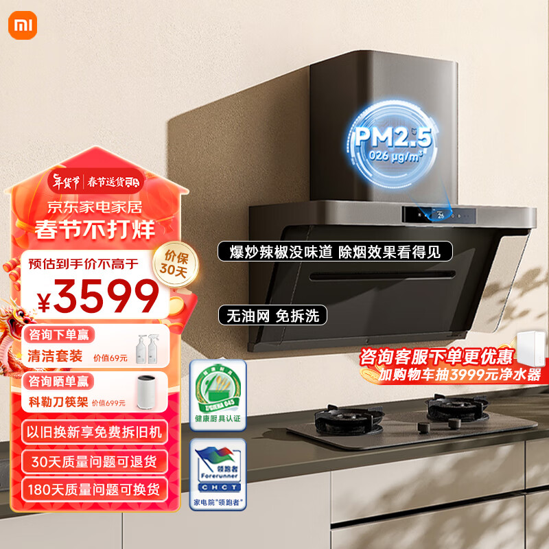 米家小米侧吸抽油烟机 净味净烟机P1 智能变频油烟机 家用厨房大吸力吸油烟机MJ04CY价格:3599.00元!