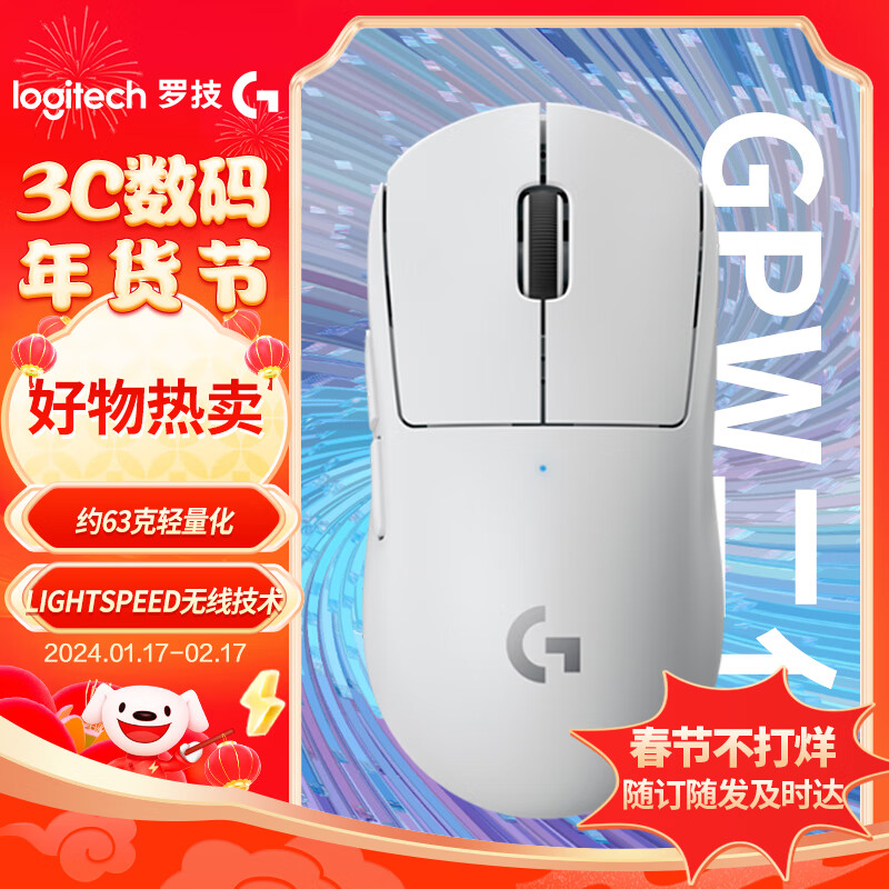 罗技(G)PRO X SUPERLIGHT GPW二代 2代 狗屁王二代 无线游戏鼠标 电竞鼠标 轻量化63g 职业选手推荐 白色价格:699.00元!