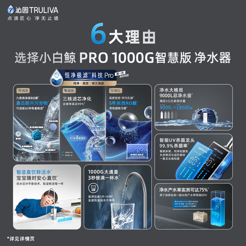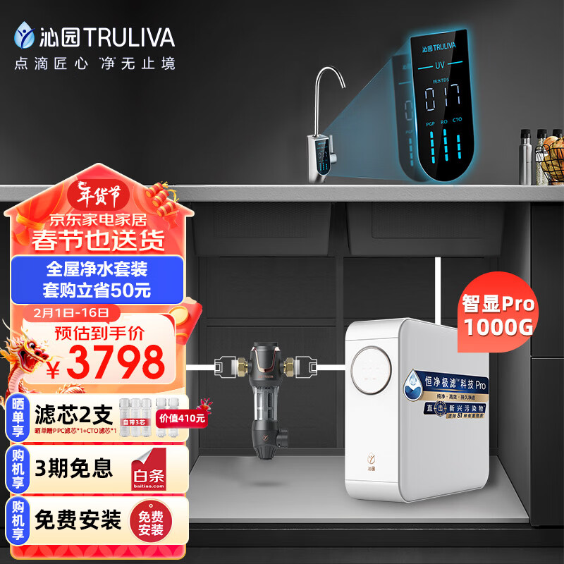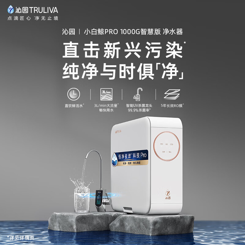 沁园(TRULIVA)小白鲸Pro1000G智能龙头二件套装 净水器UR-S51076i+前置过滤器P-A5510(黑) 全屋净水套装价格:3798.00元!