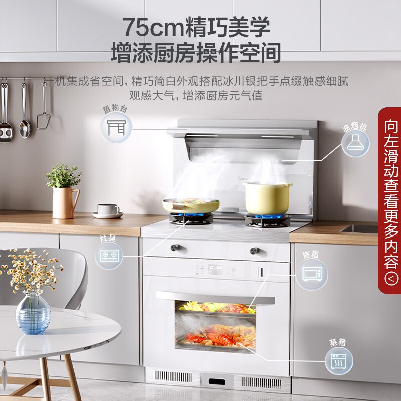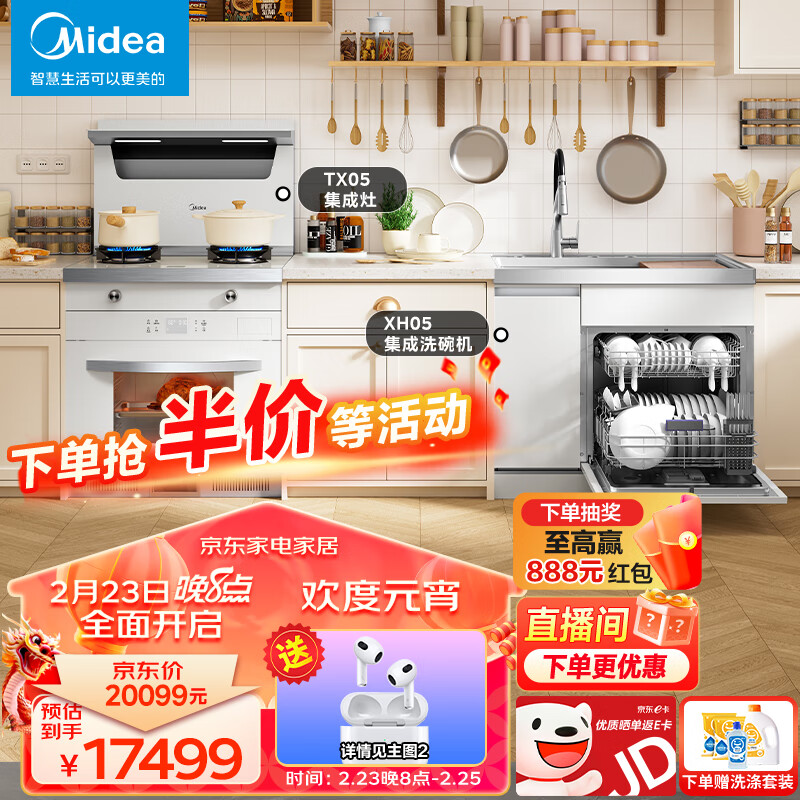 美的(Midea)蒸烤一体集成灶 5.2KW燃气灶 13套集成水槽洗碗机 超一级水效 三星消毒 TX05+XH05白色套装 天然气价格:17499.00元!
