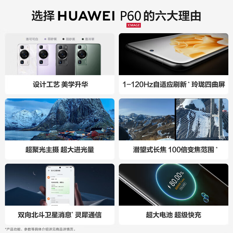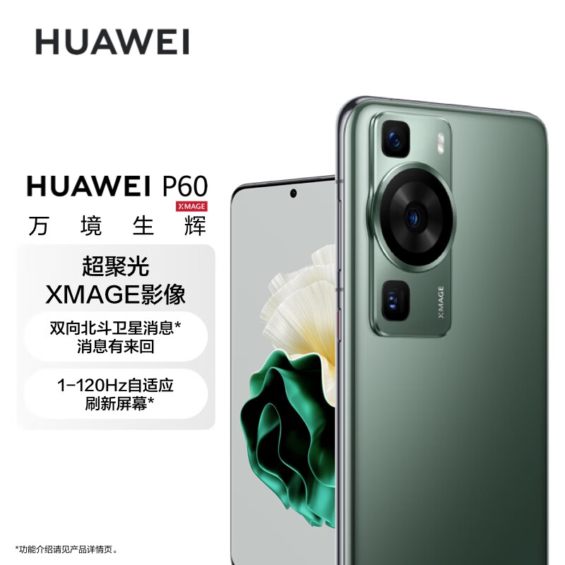 华为/HUAWEI P60 超聚光XMAGE影像 双向北斗卫星消息 512GB 翡冷翠 鸿蒙曲面屏 智能旗舰手机价格:5988.00元!