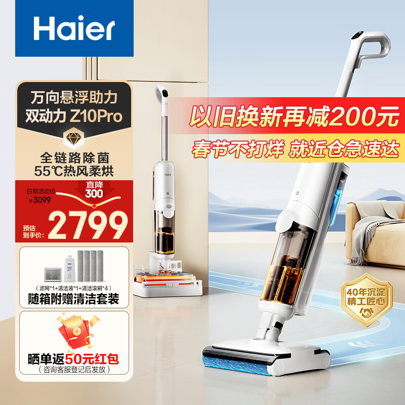 海尔(Haier)无线智能洗地机Z10pro家用吸拖一体拖地机吸尘器电动拖把双滚刷双动力防缠绕热风烘干电解水除菌价格:3099.00元!