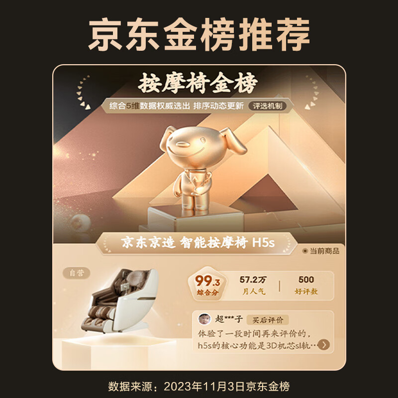 京东京造按摩椅家用全身太空舱H5s 全自动多功能智能电动沙发按摩机 3D机芯零重力腰部按摩 父母亲生日礼物价格:3199.00元!