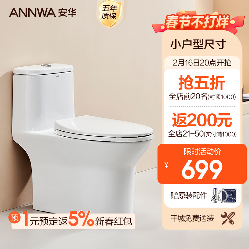 安华马桶一级水效连体坐便器小户型虹吸式家用节水卫生间坐厕NL131M价格:819.00元!