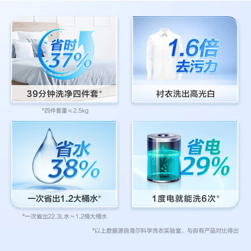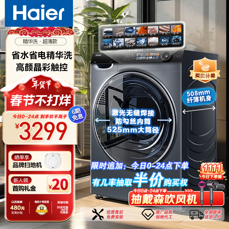 海尔(Haier)精华洗滚筒洗衣机全自动家用 10公斤超薄平嵌525mm大筒径 变频智能投放 触控超大晶彩屏 以旧换新价格:3297.00元!