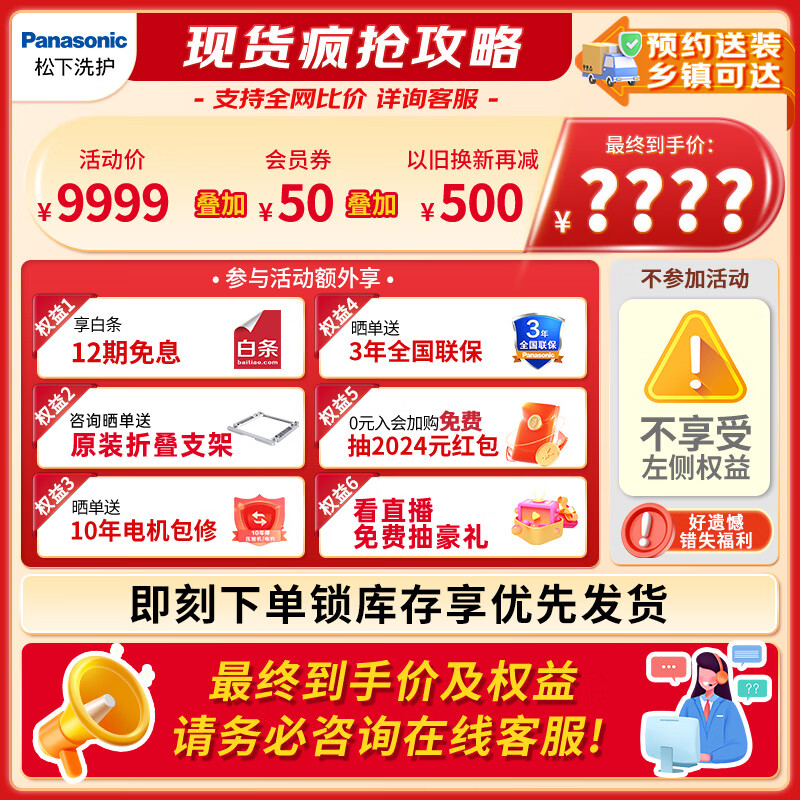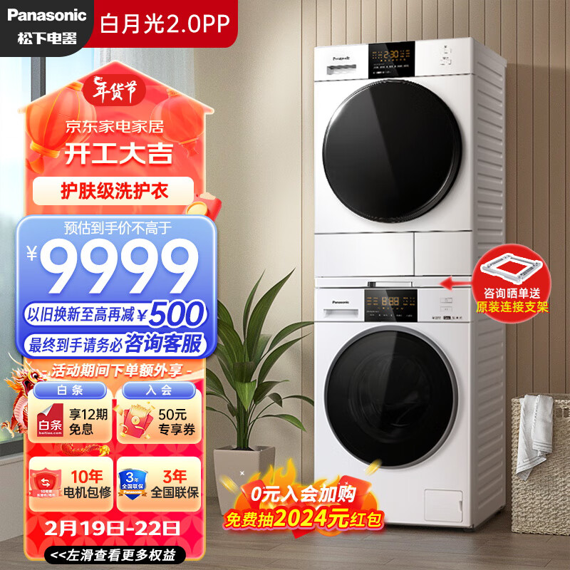 松下(Panasonic)白月光2.0PP 升级护理版 10+10洗烘套装 变频压缩机 光动银除菌 泡沫净 宠物除毛烘 3E1AK+82QR1价格:9999.00元!