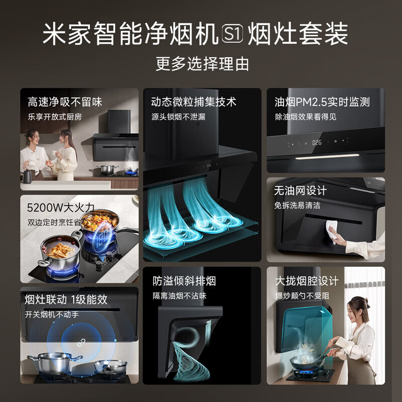 米家小米抽油烟机净烟机S1 烟灶套装 侧吸智能吸油烟机空气净化变频大吸力油烟机MJ05CY+P1天然气价格:3999.00元!